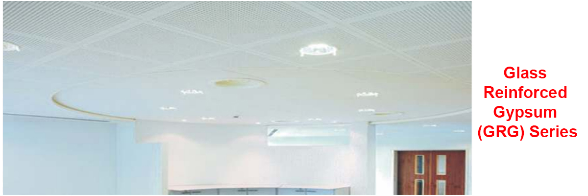 Earcons GRG (Glass Reinforced Gypsum) Ceiling Tiles, a concept to achieve optimum creativity & functionality. Glassfiber Reinforced Gypsum is developed to allow Architects and Designers to incorporate complex or simple elements that lead to and exciting dimension to interior spaces. A composition of high strength gypsum reinforced with glassfibers, it is factory molded into any shape or size. The Gypsum Plaster used for making GRG Ceiling Tiles confirms to standard ASTM C28 / C28M. GRG Ceiling tile have certified humidity resistance (RH) of 99 % as per the test standard ASTM C47303 / ASTM C 139604.