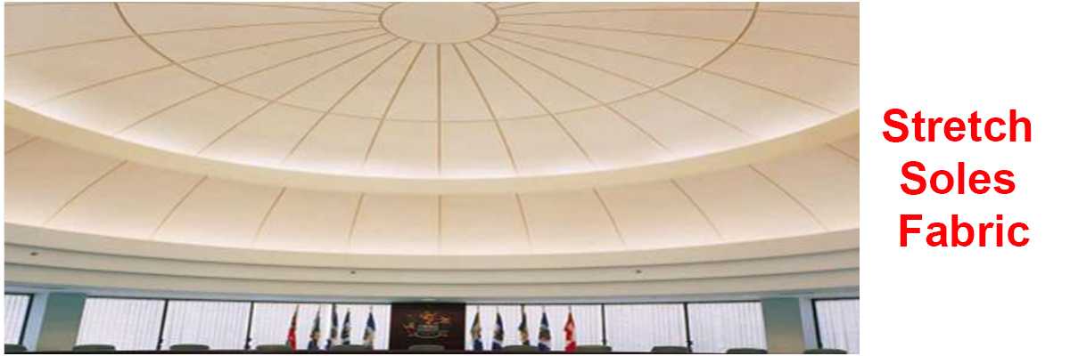 Stretch Ceiling Systems are decorative membranes that can be used in nearly any application. The membranes are most common for creating ceiling applications, but may also be used to create wall applications, ceiling and wall murals, suspended 3-D panels, or freestanding features. They can be given virtually any shape. The membrane is made with a special polyvinyl chloride base that is guaranteed to be cadmium-free. Stretch Ceiling Systems allow the user to achieve attractive and modern designs within a short period of time while avoiding the mess typically associated with ceiling construction. The assembly process takes place by stretching the ceiling membrane across an aluminum structure that has been fastened to the wall or frame at any desired height. Stretch Ceiling Systems are the only system that can be fastened directly to the walls and do not constitute additional load to the ceiling structure.